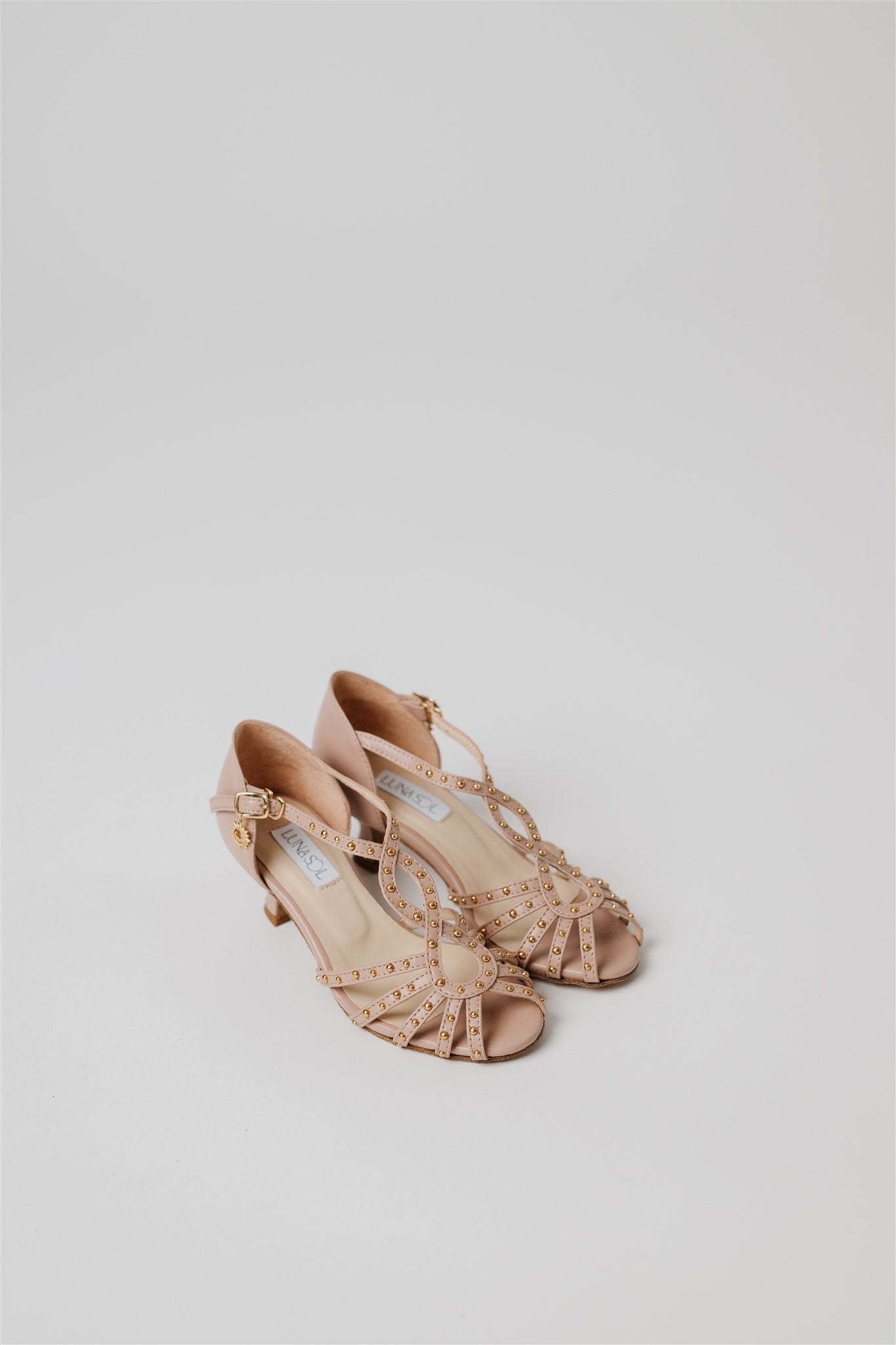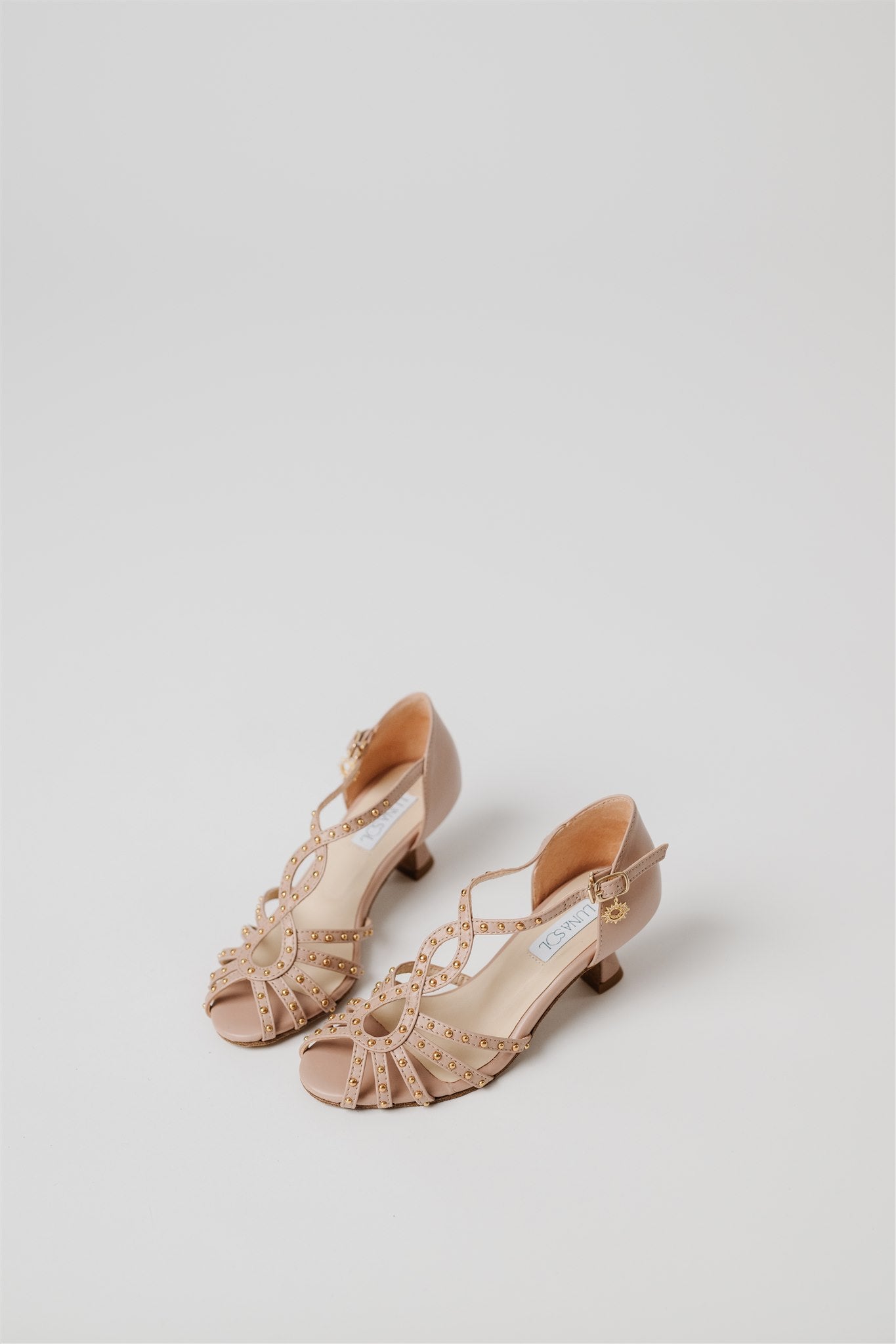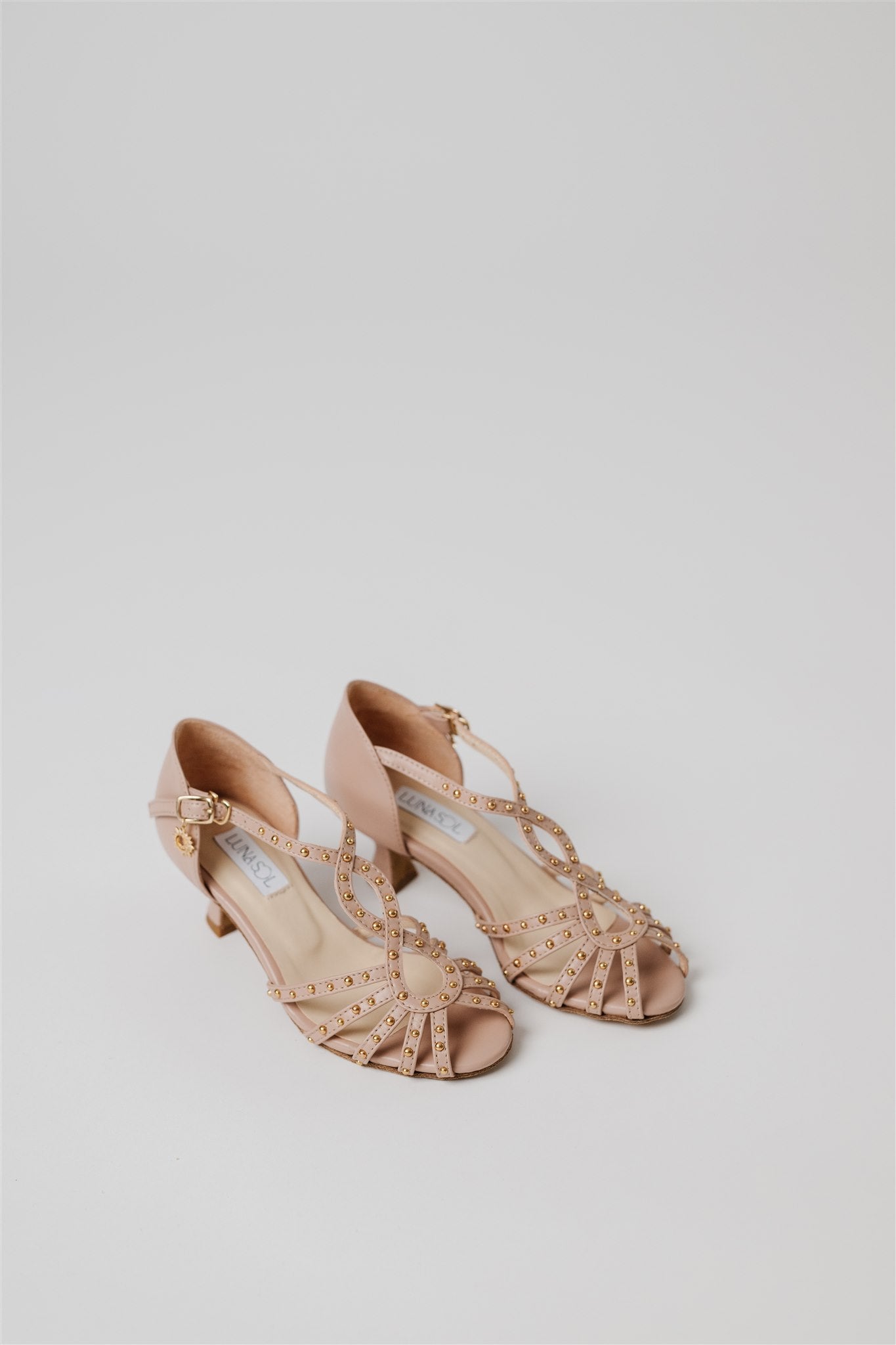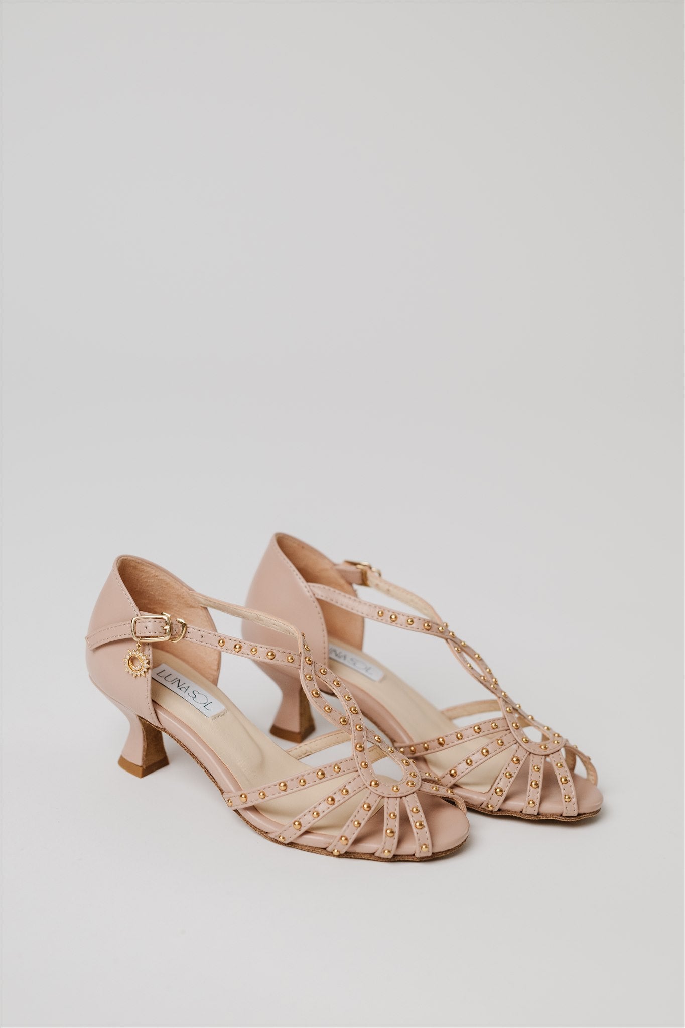 Crafted from 100% Spanish cow leather in a leg-lengthening blush nude and lined in buttery-soft Spanish goatskin, this silhouette blends la dolce vita charm with the comfort and structure dancers need. Gold grommets catch the light just enough to make a statement—whether you're dancing through a salsa social or heading to an outdoor rehearsal dinner.