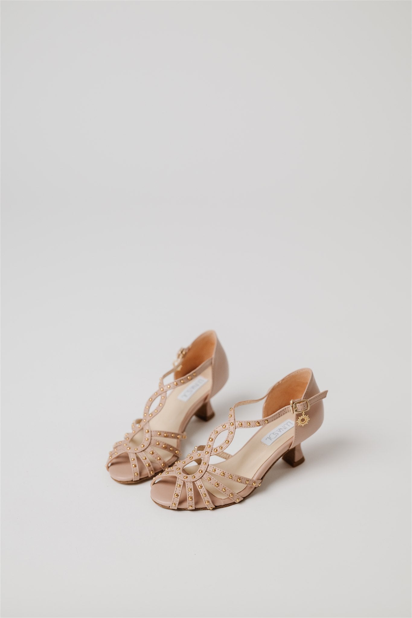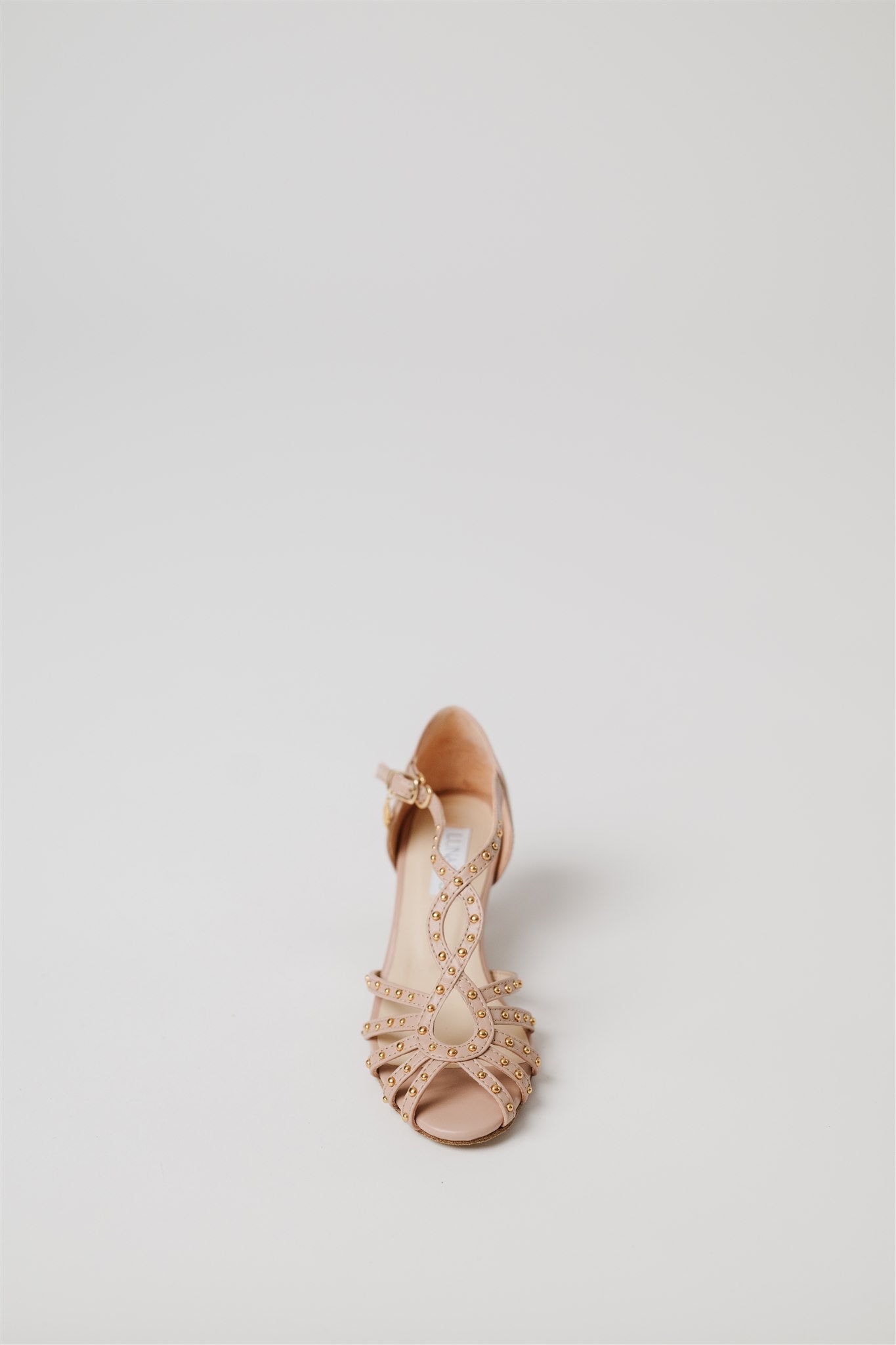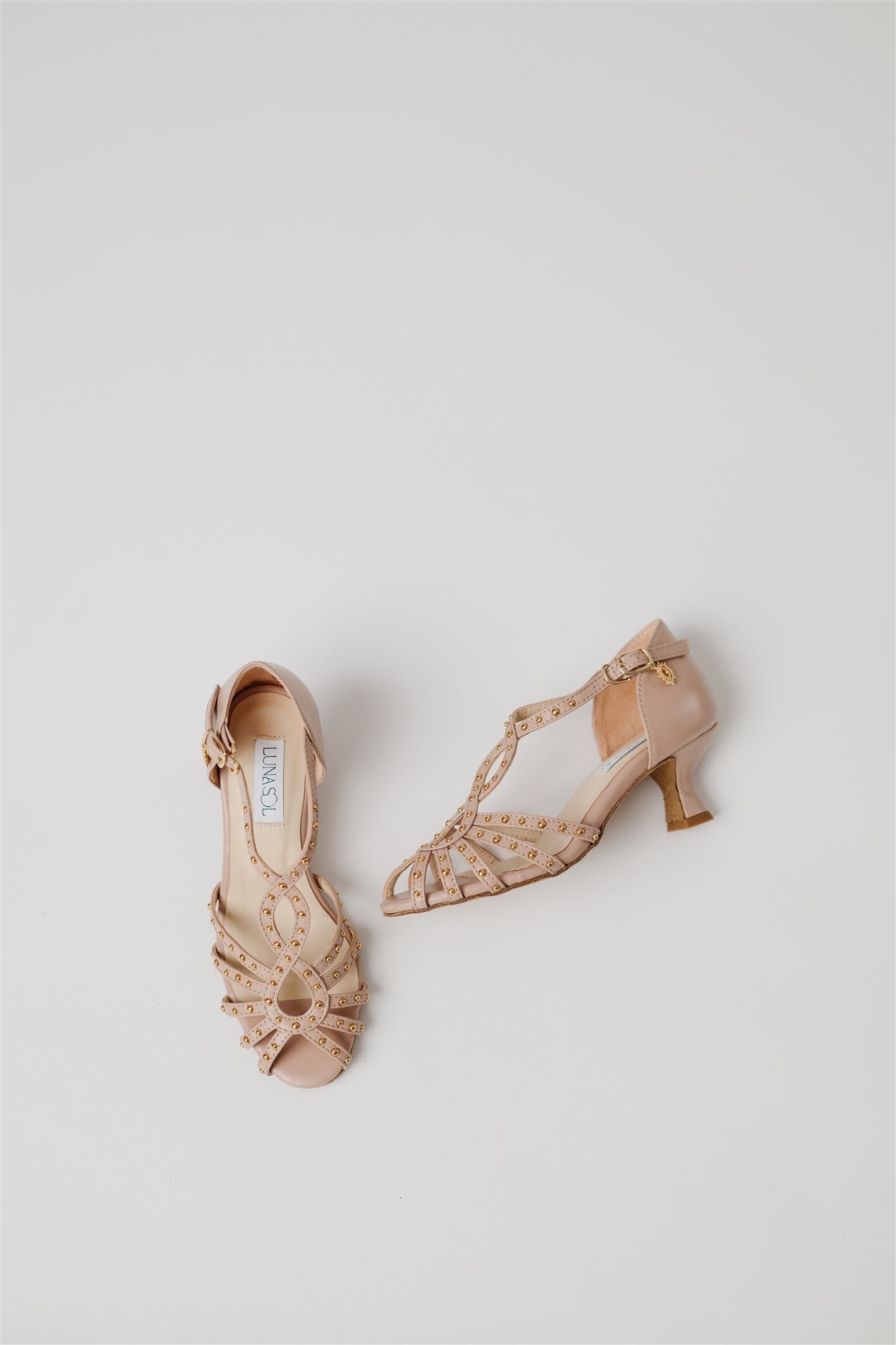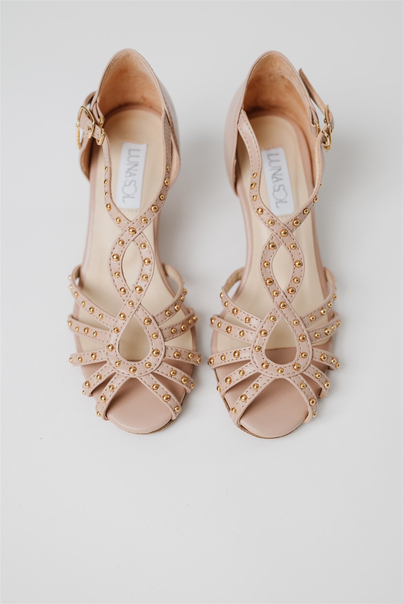 Crafted from 100% Spanish cow leather in a leg-lengthening blush nude and lined in buttery-soft Spanish goatskin, this silhouette blends la dolce vita charm with the comfort and structure dancers need. Gold grommets catch the light just enough to make a statement—whether you're dancing through a salsa social or heading to an outdoor rehearsal dinner.