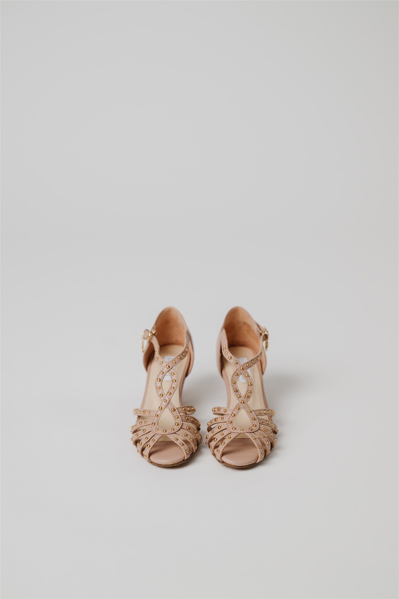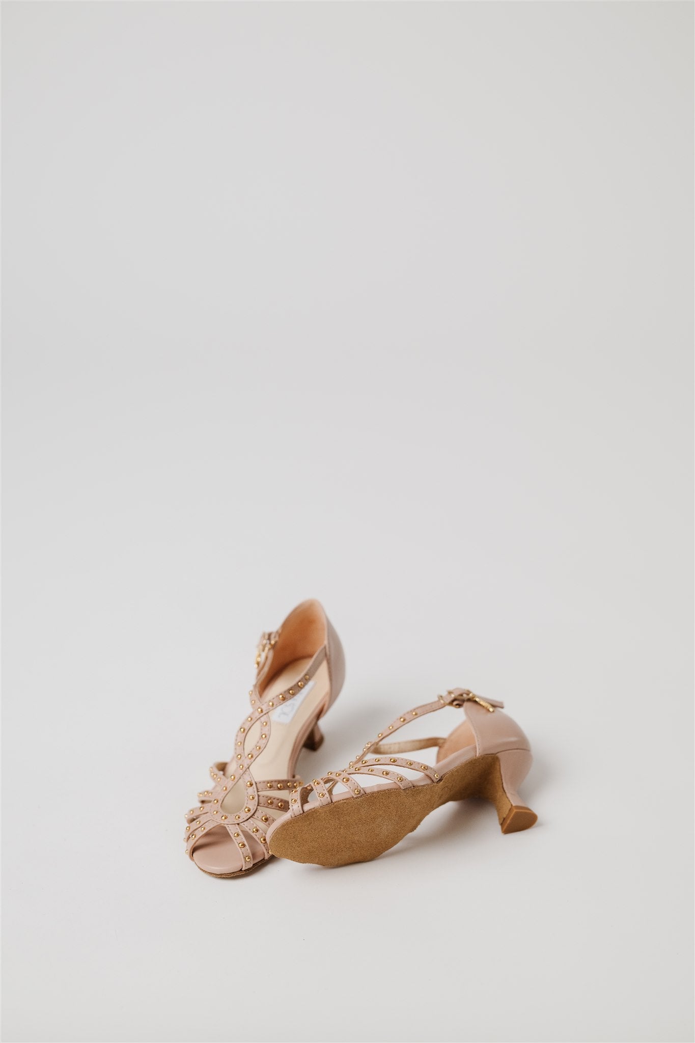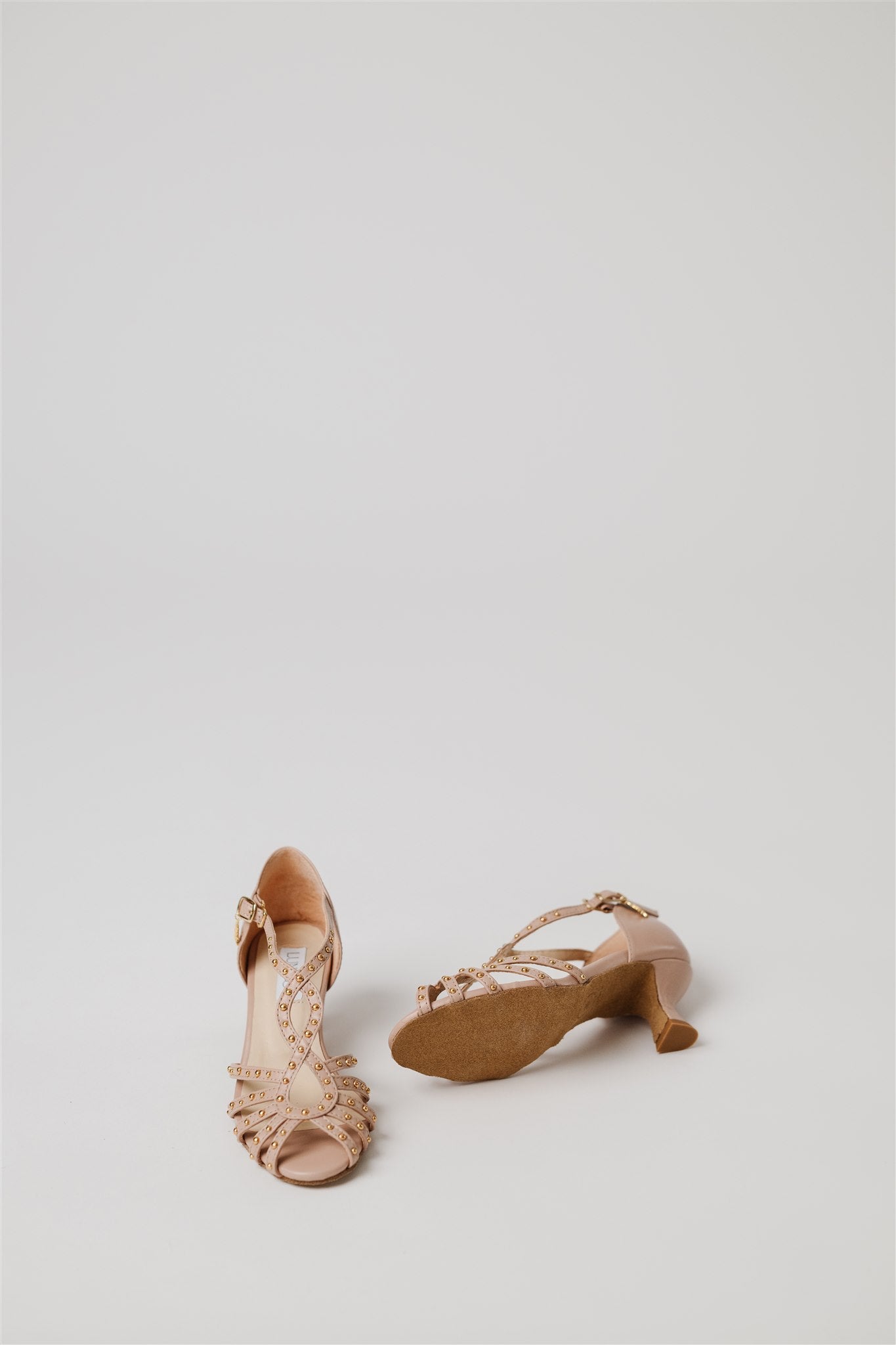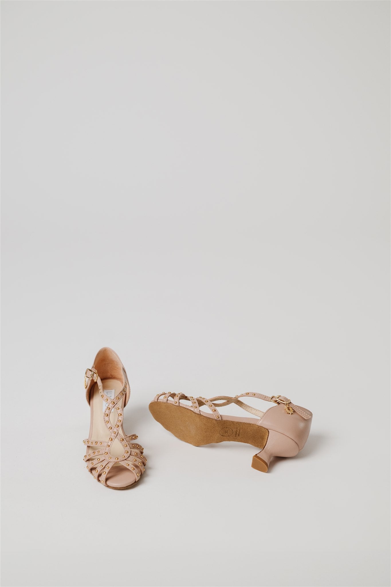 Crafted from 100% Spanish cow leather in a leg-lengthening blush nude and lined in buttery-soft Spanish goatskin, this silhouette blends la dolce vita charm with the comfort and structure dancers need. Gold grommets catch the light just enough to make a statement—whether you're dancing through a salsa social or heading to an outdoor rehearsal dinner.